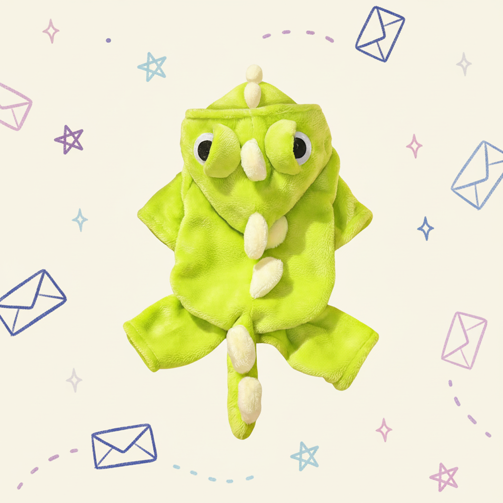 This adorable dinosaur-themed pet onesie combines cuteness, comfort and practicality for your furry companion: