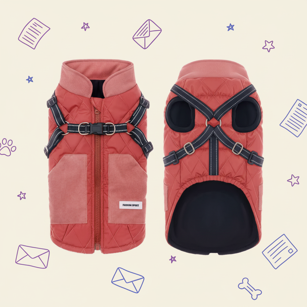 This quilted dog winter coat is designed to keep your furry friend cozy and comfortable in cold weather—perfect for daily walks, outdoor play, or casual outings.